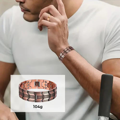 This is more than just a stylish accessory. The legant copperBracelet is designed for enhanced magnetic power-a keyprinciple for those seeking balance and vitality.Its design is equipped with 3 rows of powerful magnetsmaximizing effectiveness and providing steady supportthroughout your day.